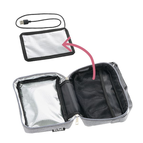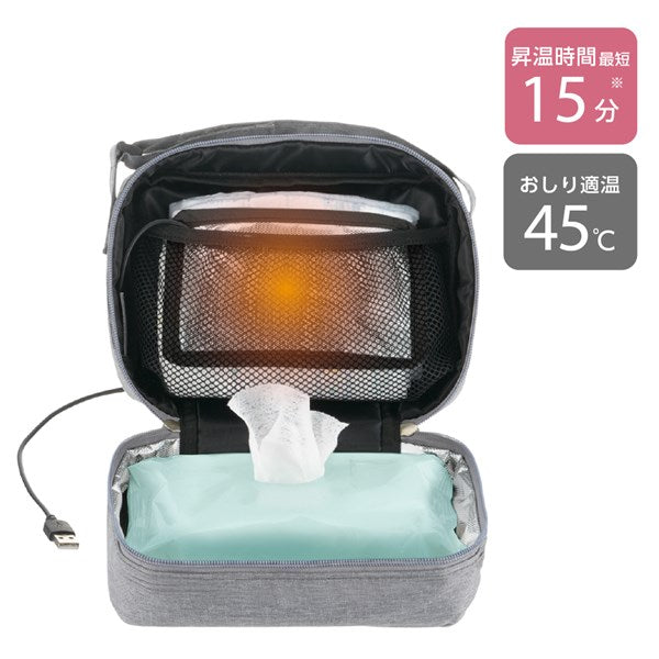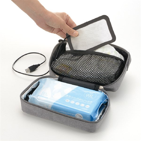 外でも素早くあったまるヒーター付きのおむつポーチです。