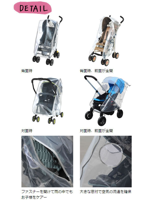 ・お子様が座っている位置で開けることができるので、雨の中でもお子様をケアすることができます。