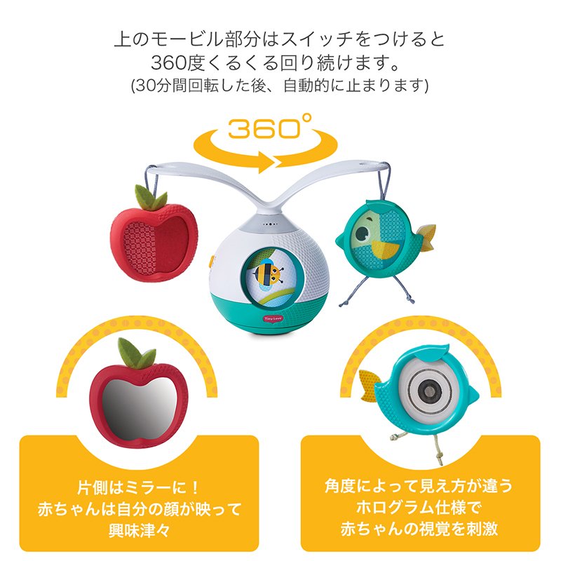 床置きにして赤ちゃんの側におけば、楽しく遊べるのではらばいの時間を長くするのに役立ちます。