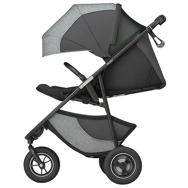 自然な姿勢をサポートする「メディカル成長マモール」や地面の熱やホコリから遠ざける58cmの「ハイシート」等による快適な乗り心地で赤ちゃんスマイル。小回りや段差もスムーズな「安定走行」と空気入れ不要の「メンテナンスフリータイヤ」等による使い心地の良さでママもスマイル。