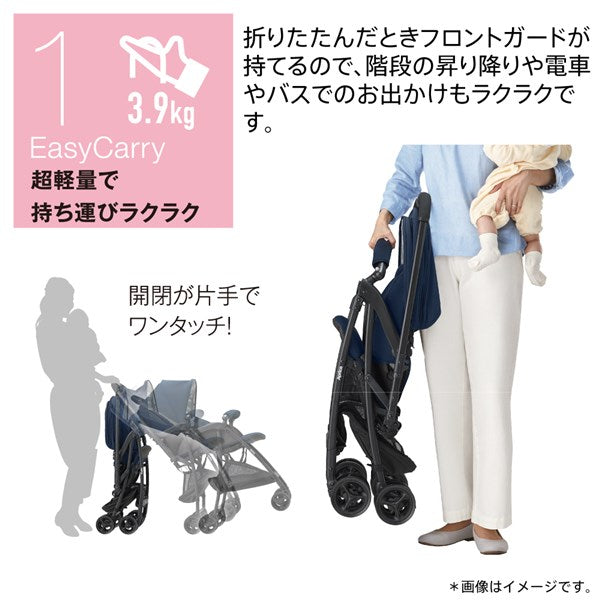 「カルーンエアー メッシュ」は、超軽量3.9kgの1カ月から3歳頃まで使える両対面・A形ベビーカー。持ち運びラクラクの超軽量ボディーに、たいせつなものだけをギュッと詰め込みました。