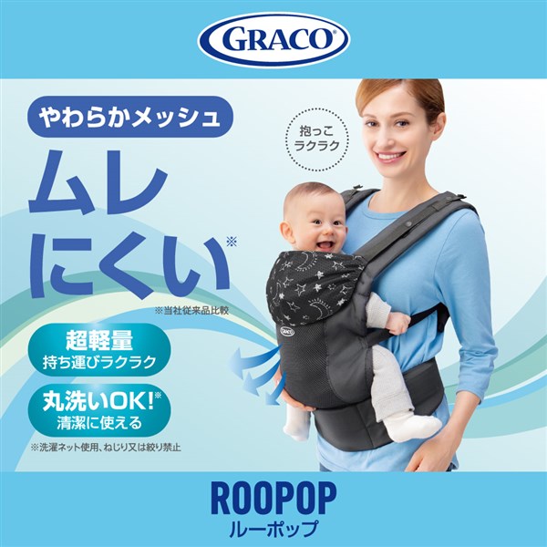 通気性の良いメッシュ生地で赤ちゃんもママ・パパもムレにくい※。
