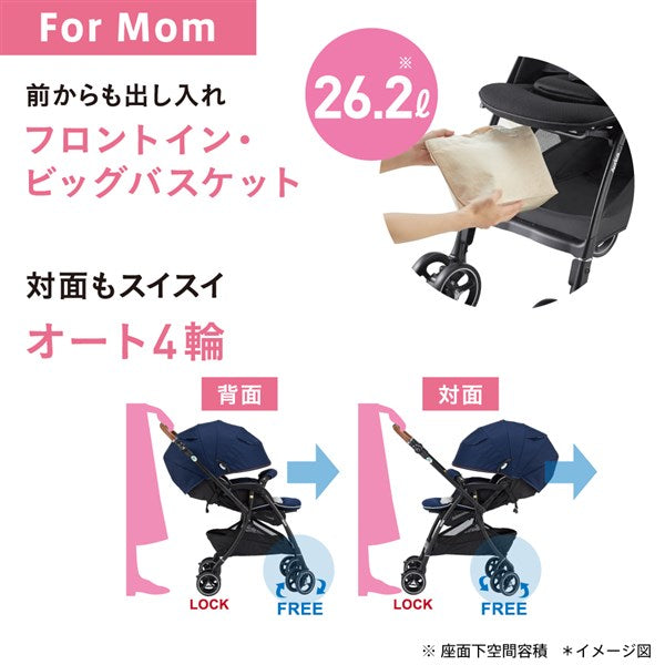 【シートマットプレゼント】ラクーナクッション AE ネイビー(NV) アップリカ ベビーカー 軽量 オート4輪 両対面 A型 振動吸収設計【P/N】【3年保証対象品】【送料無料 沖縄・一部地域を除く】【ラッピング不可商品】