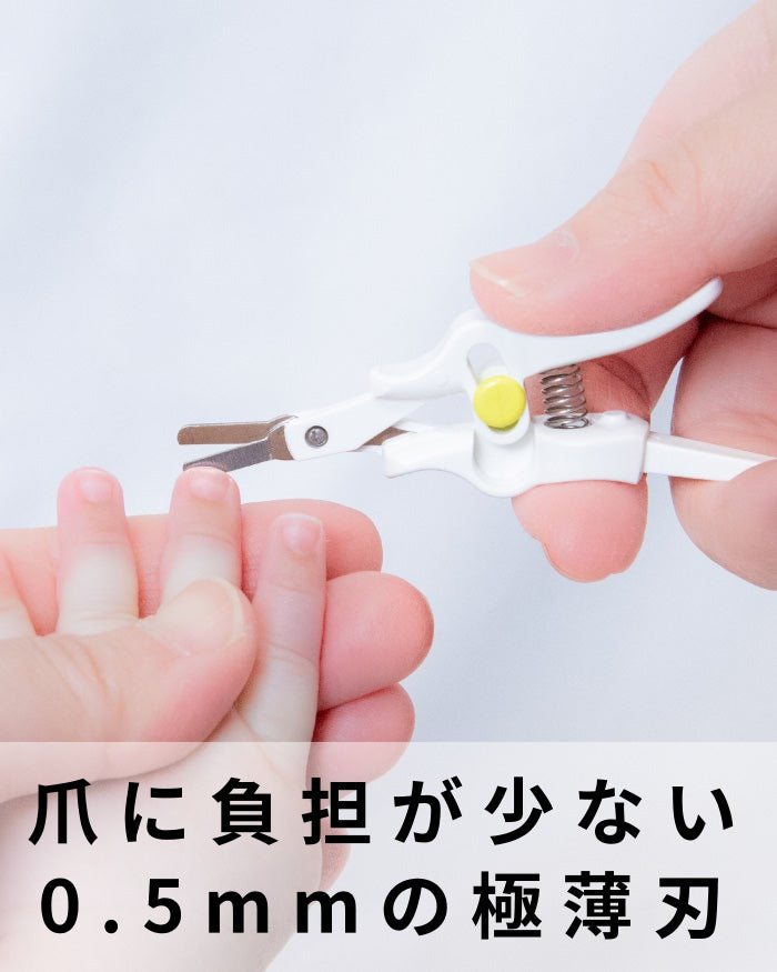 赤ちゃんのツメに負担が少ない0.5mm厚の極薄刃先。