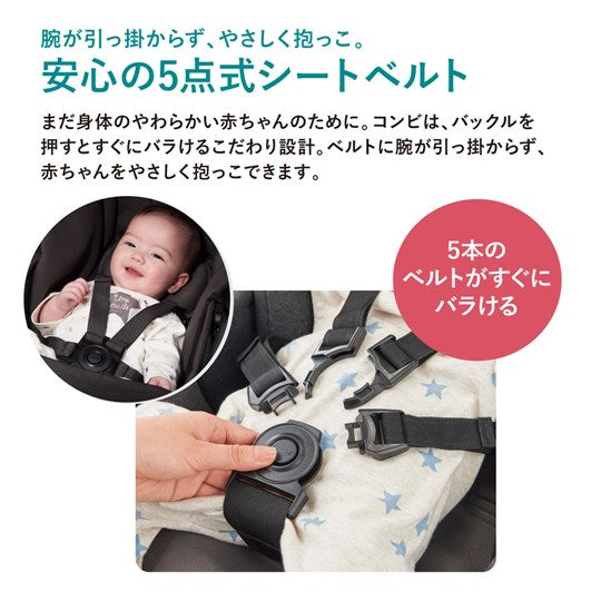 脇に抱えて、片手でラクに持ち運べるグリップを座面に搭載。グラつかずに安定してベビーカーが持てる、コンビだけのカタチです。