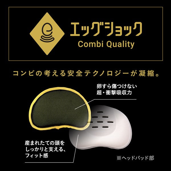 卵を落としても割れないほどの超・衝撃吸収素材「エッグショック」を頭部クッションに内蔵し、産まれたての頭を守ります。
