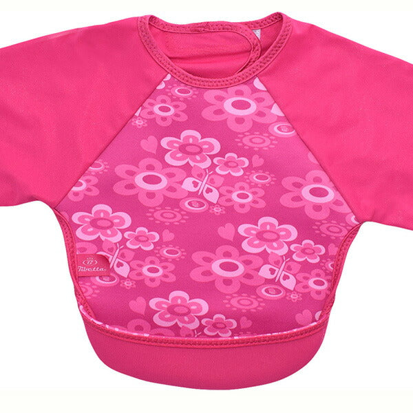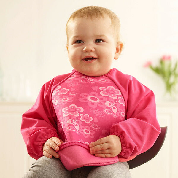●ウェットスーツ素材と防水素材でできた、とっても軽くて軟らかい袖付きのベビー用エプロンです。
