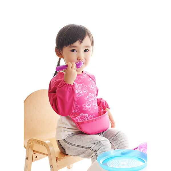 ●ラグラン袖への改良により肩や腕が動かしやすくなり、よりお子様の「自分で食べたい」気持ちをサポートします。