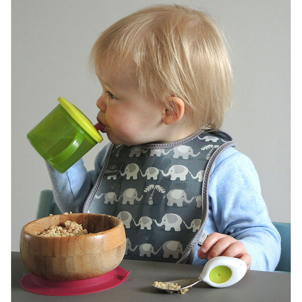 吸水性と防水性を兼ねそろえたネオプレン素材のおかげで、食後のお片付けやお洗濯、お手入れがとっても簡単になりました。