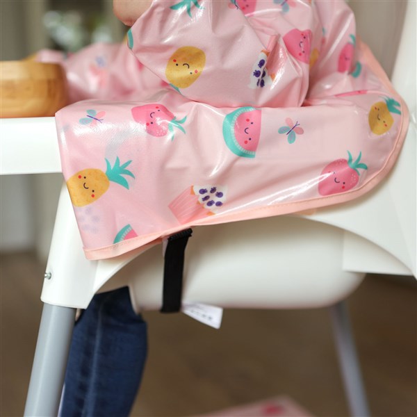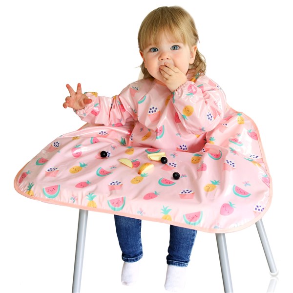 お子様とハイチェアのテーブルまですっぽりカバーしてくれるので汚れを気にすることなくお食事をお楽しみいただけます。