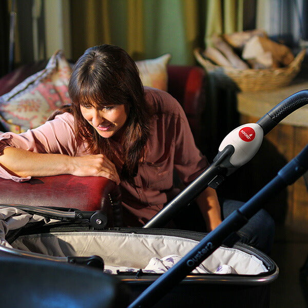 ロキットをベビーカーに取り付けて、電源ボタンを押したら、あとはベビーカーを揺らしたい速度に調節するだけ。心地よい揺れがベビーをリラックス状態へと導きます。