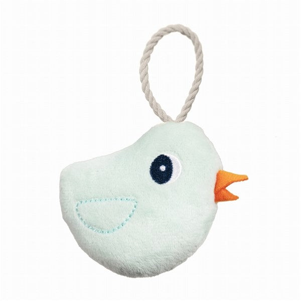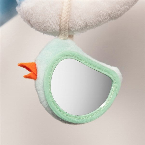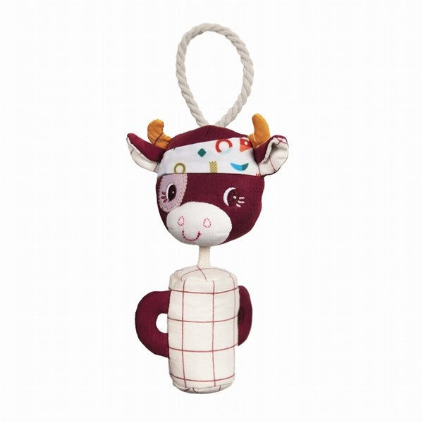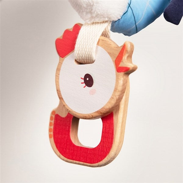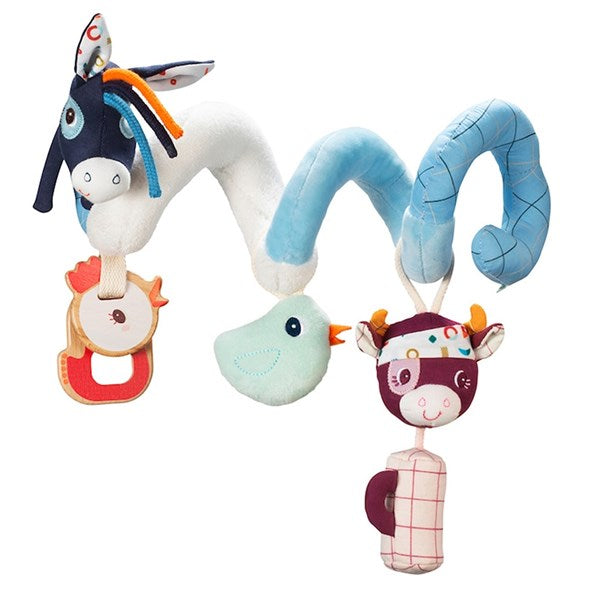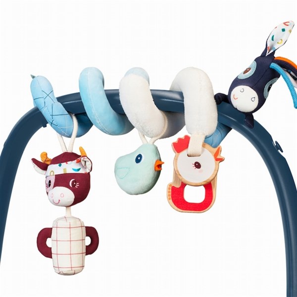 ベビーカーやベビーベッドに巻き付けて。ぶら下がった小さなおもちゃにはそれぞれ異なる仕掛け。揺れるたびにリンリンやさしい鈴の音。