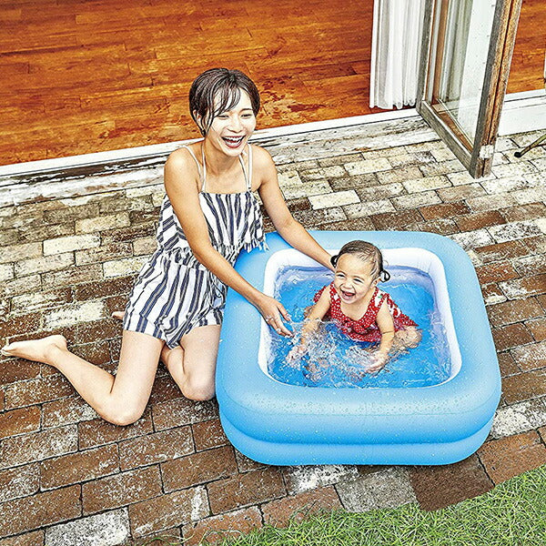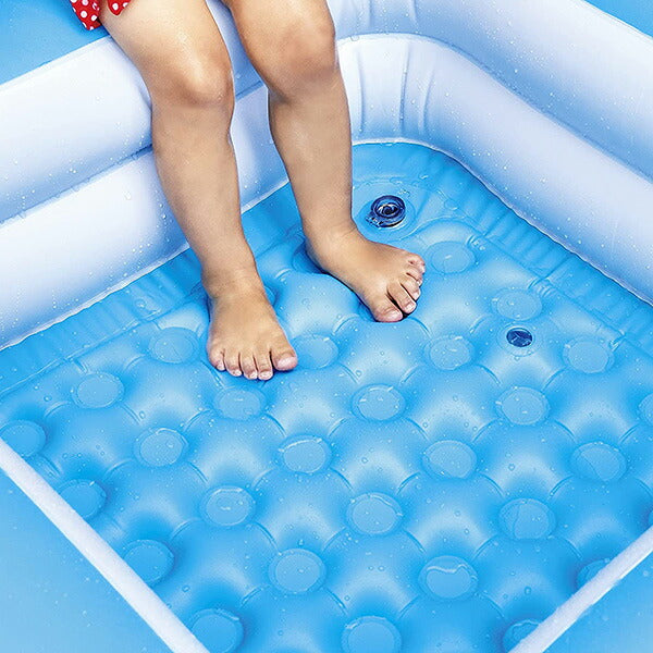 小さなお子様用のコンパクトな正方形のプールです。底面にも空気が入るので、クッション性が高くお子様の足やおしりにやさしい作りです。