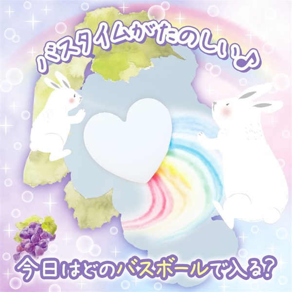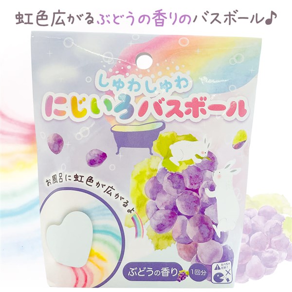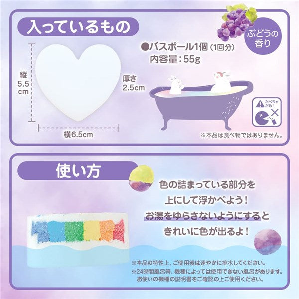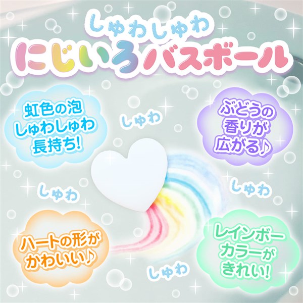 お風呂に虹色が広がる!しゅわしゅわにじいろバスボール!ぶどうの香り かわいいハートの形です♪