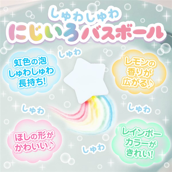 お風呂に虹色が広がる!しゅわしゅわにじいろバスボール!レモンの香り かわいい星の形です♪